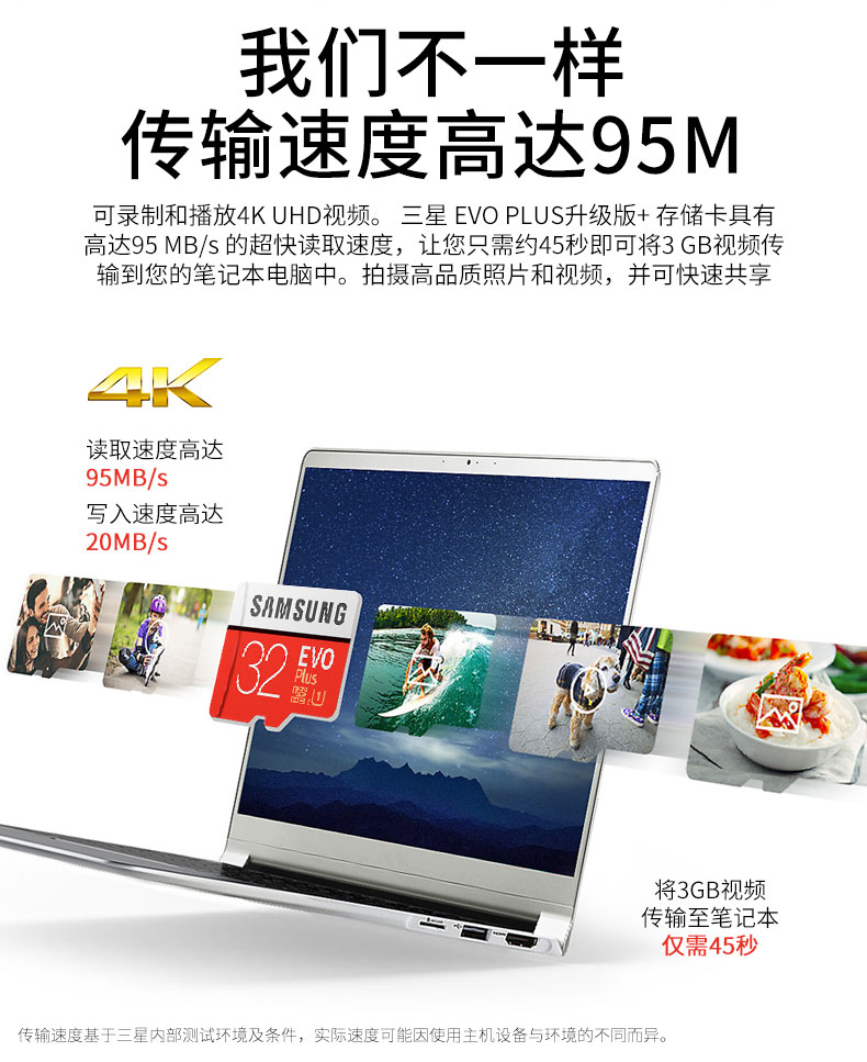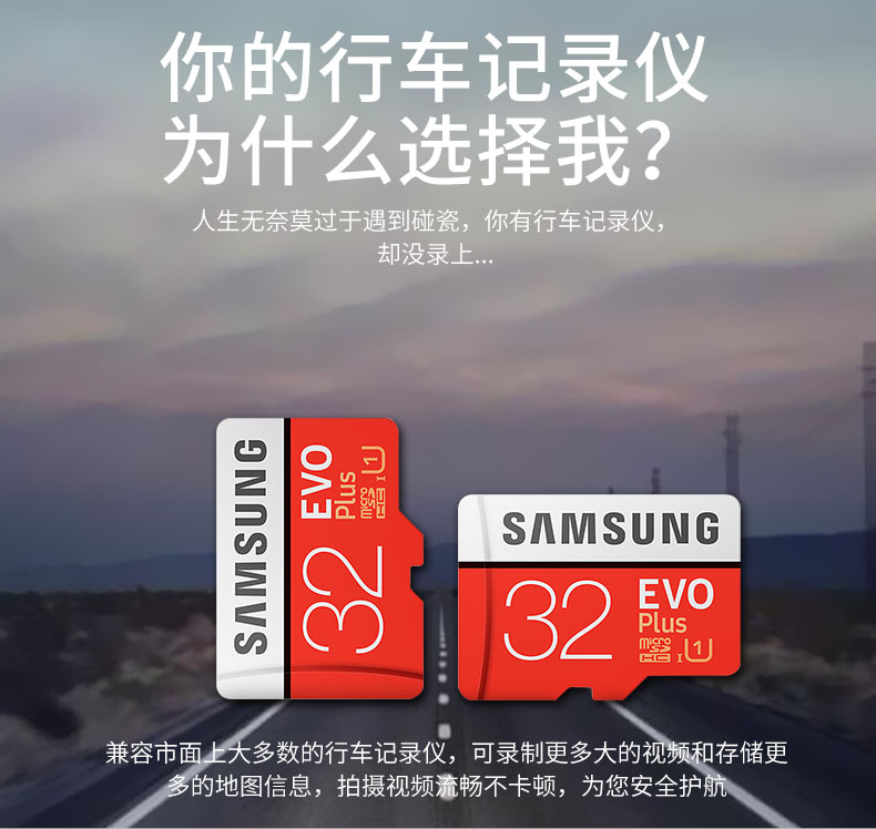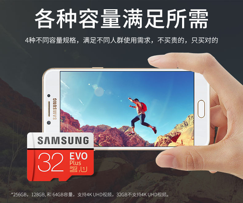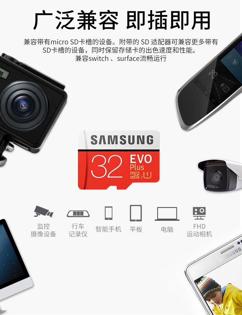 > 三星(SAMSUNG)存储卡 读速95MB/s Class10 高速TF卡(Micro SD卡)红色plus升级版