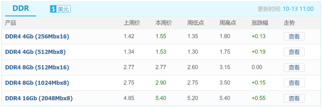 此外,原厂向更先进的1Znm 16Gb升级,且集中提高货源在市场上的释出,导致8Gb资源供应较为紧缺,再加上原厂上调产品报价。因此,目前来看Q4内存行情较为乐观。